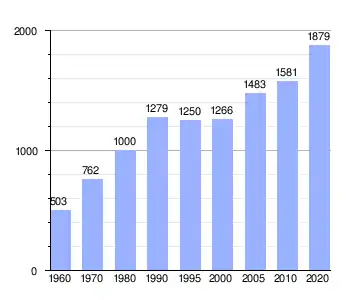 | Gráfica de evolución demográfica de Cuauhtémoc entre 1960 y 2020 |