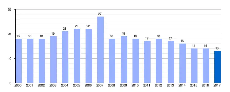 | Gráfica de evolución demográfica de Cubillos del Rojo entre 2000 y 2017 |