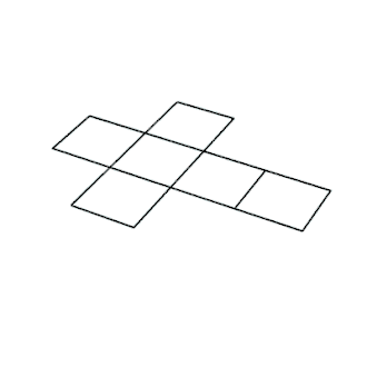 Un cubo tiene once redes (una se muestra arriba): es decir, hay once maneras de aplanar un cubo hueco cortando siete aristas.[2] Para colorear el cubo de forma que ninguna cara adyacente tenga el mismo color, se necesitarían al menos tres colores.
