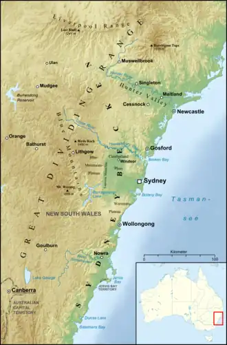 - ↑ «Sydney Basin Structure Diagram». NSW Primary Industries. Archivado desde el original el 17 de septiembre de 2011. Consultado el 24 de marzo de 2008.