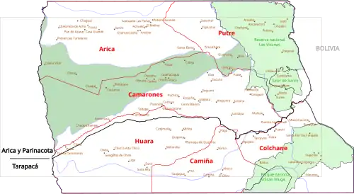 - ↑ a b c Análisis integral de soluciones a la escasez hídrica, (segunda parte), Región de Arica y Parinacota, Informe final, 2017