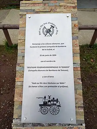 - ↑ Bomberos de Chile (27 de julio de 2020). «Historia del Cuerpo de Bomberos de Temuco». Consultado el 27 de julio de 2020.