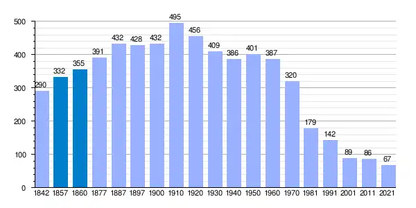 | Gráfica de evolución demográfica de Cueva de Agreda[5] entre 1842 y 2021 |