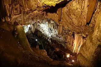 La cueva de Antíparos o cueva de Ayios Ioannis es una gruta natural situada a 8 km de la localidad de Antíparos, en la isla del mismo nombre. Tiene una longitud de 89 m, una profundidad de 85 m y su anchura máxima es de 60 m, con una superficie aproximada de 5600 m2. Abundan en ella las estalagmitas y estalactitas. Una de las estalagmitas está considerada como la más antigua de Europa, con una edad de 45 millones de años.[1]