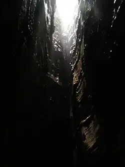 El acceso principal a la cueva consiste en un túnel vertical llamado la Chimenea. La boca o entrada es de 2 m de ancho y 15,6 m de largo en la abertura, y tiene aproximadamente 63 m de profundidad. La bajada desde el punto donde se inicia el descenso es de 90 grados en vertical y tiene 48.9 m, con un desnivel de -200 md. El descenso solo se puede realizar utilizando una cuerda para escalar, arnés y descendedores (cada persona deberá llevarlos por su propia seguridad). Una vez que se ha descendido por la chimenea, uno se encuentra en un espacio gigante de 7,8 metros de ancho y 68 metros de largo. Luego de avanzar 20 metros hacia el este, se presenta otra pequeña bajada de 5,6 m de altura, para entrar definitivamente a los diversos túneles, que miden un total de 4,6 km.[4]
