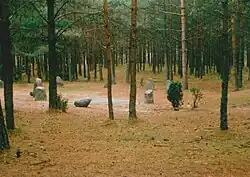 Una característica de la cultura de Wielbark, que tenía en común con el sur de Escandinavia, era el levantamiento de montículos cubiertos de piedra, círculos de piedra, estelas solitarias y variaciones de revestimiento de adoquines. Estos círculos de piedra podrían haber sido lugares de comida comunal.[10]