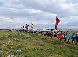 En Sahagún, declarada de Interés Turístico Nacional en 2023,[38] la Cofradía de Jesús Nazareno y Patrocinio de San José recorre las calles de la villa durante los días grandes de la Semana con actos como la subasta de pasos, el uso de la trompa, la Isa y la Procesión de los Pasos. En La Bañeza son tres las cofradías que recorren las calles de la ciudad en un total de 14 procesiones, entre las que destaca la procesión del Santo Potajero el Miércoles Santo, organizada por la Cofradía de las Angustias y Soledad y declarada de Interés Turístico Provincial, en la que se reparten al pueblo raciones de potaje de garbanzos con arroz y bacalao.[39] En Valencia de Don Juan, declarada de Interés Turístico Provincial, descatan los actos que tienen lugar el Viernes Santo: la Procesión del Encuentro, el Viacrucis y el Santo Entierro.[40] También destacan las representaciones vivientes de Jiménez de Jamuz y Almanza, ambas declaradas de Interés Turístico Provincial.[41]