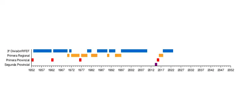 | Regional Preferente (4) | 1983-84 - 1984-85 - 1990-91 - 2017-18 | 1995-96 - 1996-97 | 1994-95 - 2016-17 |