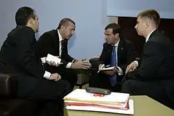 - ↑ Parliament (UK): Townsend, Ian. "G20 & the November 2010 Seoul summit" (SN/EP/5028), 19 October 2010, retrieved 2011-04-07; excerpt, "Today, we designated the G-20 as the premier forum for our international economic cooperation" citing "Pittsburgh G20 Leaders’ summit communiqué," ¶50 September 29 2009, retrieved 2011-04-07; excerpt, "Today, we designated the G-20 as the premier forum for our international economic cooperation. We have asked our representatives to report back at the next meeting with recommendations on how to maximize the effectiveness of our cooperation. We agreed to have a G-20 Summit in Canada in June 2010, and in Korea in November 2010. We expect to meet annually thereafter, and will meet in France in 2011" ("Hoy, designamos al G-20 como el principal foro para nuestra cooperación económica internacional. Hemos pedido a nuestros representantes que informen en la próxima reunión con recomendaciones sobre cómo maximizar la eficacia de nuestra cooperación. Acordamos tener un Cumbre del G-20 en Canadá en junio de 2010 y en Corea en noviembre de 2010. Esperamos reunirnos anualmente a partir de entonces y nos reuniremos en Francia en 2011")