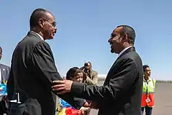- ↑ «Leaders of Ethopia and Eritrea hug and make up». CBC (en inglés estadounidense). Consultado el 15 de marzo de 2021.