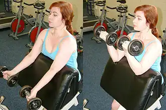 Curl de bíceps son los ejercicios que implican la ejercitación de dicho músculo. Como el bíceps trabaja en el giro de muñeca o contracción del brazo, es fácil inducir que los diferentes tipos de curls incluyan flexiones de brazos así como giros de muñeca.