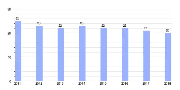 | Gráfica de evolución demográfica de Cusanca entre 2011 y 2018 |