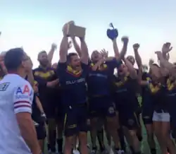 La plantilla de Custodians Rugby League celebra la consecución de su segundo título de Liga Nacional de España en la temporada 2016-2017. - Campeón de la Liga Nacional en las temporadas 2014-2015 y 2016-2017