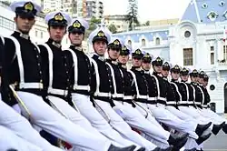 - Escalón Armada de Chile, conformado por la Academia Politécnica Naval y el Buque Escuela Esmeralda, con su banda de guerra y de músicos.