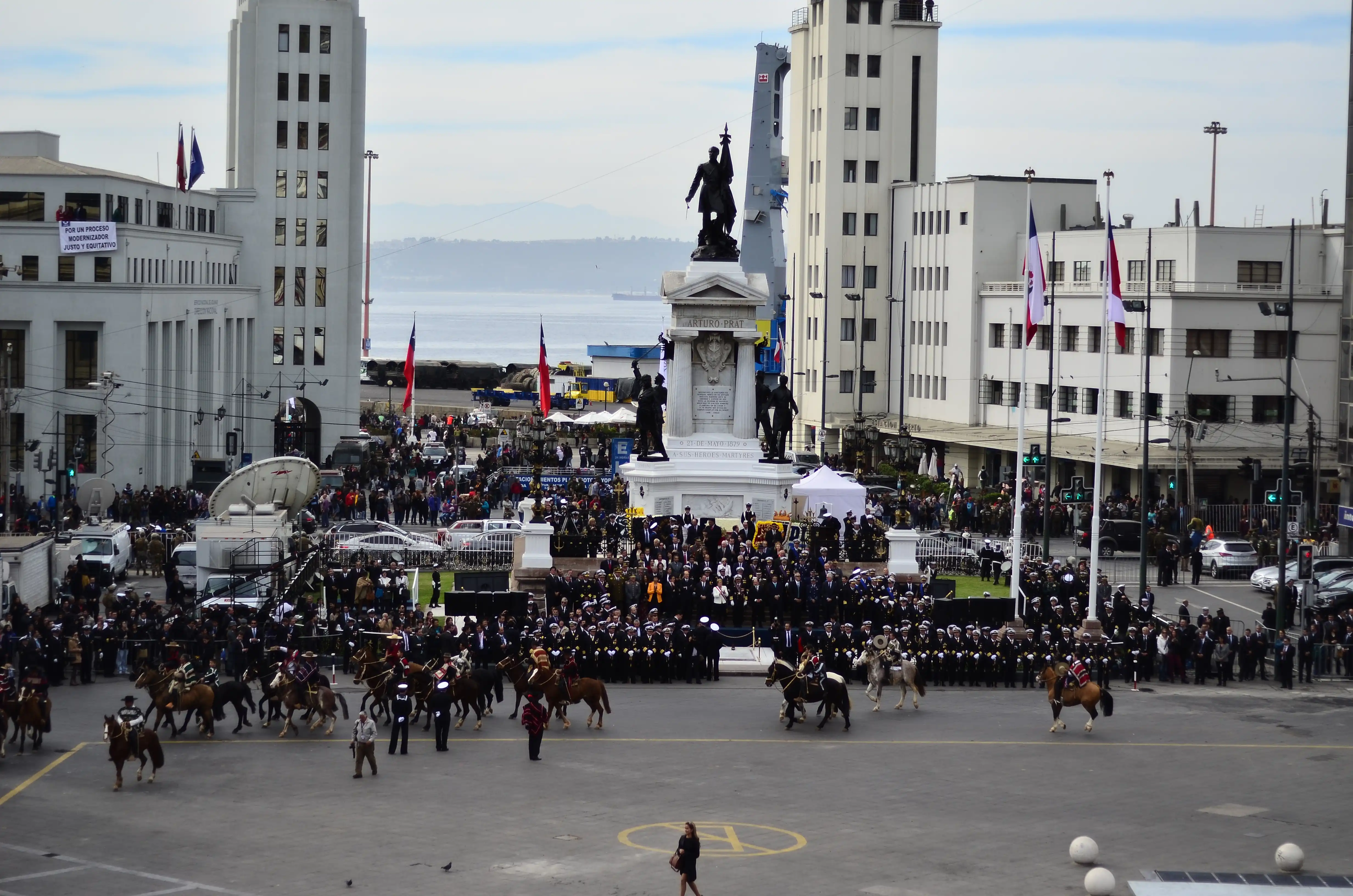 En Valparaíso hasta 1997 el presidente de la República revistaba a las fuerzas de presentación cuando salía del edificio de la Armada de Chile una vez revisadas las fuerzas la banda de músicos de la Escuela Naval interpretaba una marcha para que todas las fuerzas tomaran colocación para acercarse hacia el monumento.[cita requerida]