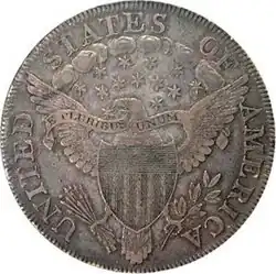 La acuñación del primer dólar de plata de Estados Unidos, conocido como el dólar del cabello suelto, comenzó en 1794 a raíz de la construcción y de la dotación de personal de la Casa de Moneda de Filadelfia. La Ley de la Moneda de 1792 exigía que las monedas de plata tuvieran una aleación del 89,2 % de plata y 10,8 % de cobre.[1] Sin embargo, los funcionarios de la ceca eran reacios a acuñar monedas con una pureza difícil de producir, por lo que se decidió emitirlas con una aleación no autorizada del 90 % de plata.[2] Esto causó que los depositantes de plata en la Casa de Moneda perdieran dinero cuando su metal era acuñado.[2] Durante el segundo año de producción del dólar del cabello suelto, se decidió que sería rediseñado.[3] Se ignora quién motivó o sugirió este cambio, aunque el historiador de numismático R. W. Julian especula que Henry William de Saussure, nombrado director de la Casa de Moneda el 9 de julio de 1795, pudo haberlo sugerido, ya que había declarado que el rediseño de la moneda estadounidense era uno de sus objetivos antes de asumir el cargo.[4] También es posible que el diseño del dólar de cabello suelto se haya suspendido debido a la fuerte desaprobación de la opinión pública.[3]