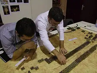 DBMM se juega con miniaturas agrupadas en elementos que simulan las unidades mínimas con capacidad táctica propia dentro de cada ejército. Aunque la mayoría de jugadores en la actualidad emplean miniaturas de 15 mm, ha ganado relevancia en los últimos años el uso de otras, como las de 25 mm, 10 mm, 6 mm o 2 mm. Un ejército medio requiere entre 150 y 180 miniaturas, si bien esta cifra está muy condicionada a la magnitud de la batalla a jugar. En algunos escenarios de gran envergadura y con la participación de hasta 8 jugadores se pueden sobrepasar las 2000 miniaturas.