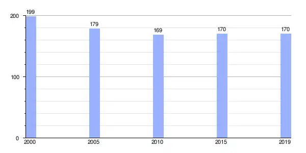 | Gráfica de evolución demográfica de Damil entre 2000 y 2019 |