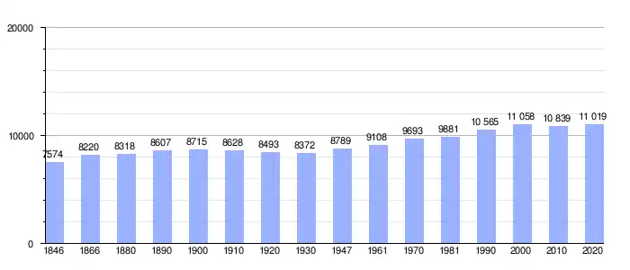 Todos los datos históricos relativos al actual municipio, el siguiente gráfico refleja su evolución demográfica, incluyendo municipios después de efectuada la fusión el 1 de enero de 1977.