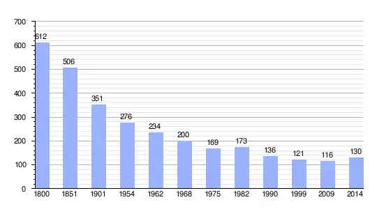 Los datos demográficos contemplados en este gráfico de la comuna de Dampierre[4] se han cogido de 1800 a 1999 de la página francesa EHESS/Cassini, y los demás datos de la página del INSEE.[5]