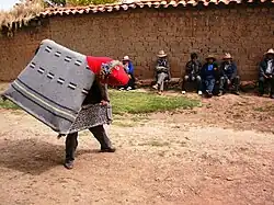 Después del «waru tsinpay», las dos danzas: awqa y tinya palla, los dos cajeros, los dos toros, los dos awkin y los famosos qatiraq (=fans) se dirigen a la iglesia. Van bailando por las calles, en la esquina aún dan un ofrecimiento a un caballero o a una dama respetable. Se posicionan frente a la iglesia, hacen una fogatilla de papeles, para simular la quema de matorrales secos, antes de la siembra. Luego uncen a los toros con un yugo y engarzan un arado «taklla», rotando los awkin van abriendo surcos imaginarios y las pallas van sembrando pétalos de flores andinas. Simbolismo del encuentro de dos etnias, de diferentes niveles culturales. La abrupta insensatez de los awqa hace estropicio del sembrío, y avientan las flores y ramillas por los aires.Cuando la noche se abate por los pliegues de los Andes, el baile y la música van cubriendo los tramos finales de estas danzas que pronto terminarán y se ocultarán para emponcharse de ichus y rimarrimas hasta el próximo año.