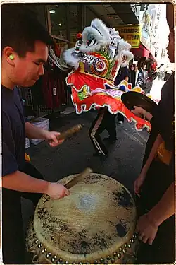- ↑ Benji Chang (2013). «Chinese Lion Dance in the United States». Asian Americans: An Encyclopedia of Social, Cultural, Economic, and Political History. Greenwood Press. ISBN 978-1598842395.