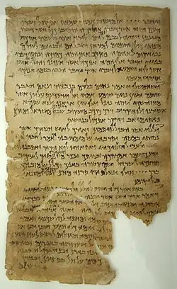 | Epístolas de Juan | 90–110 d. C.[73] Las cartas no dan ninguna indicación clara, pero los estudiosos tienden a colocarlas alrededor de una década después del Evangelio de Juan.[73] | , Uncial 0232, Codex Sinaiticus (siglo III/IV d. C.) |