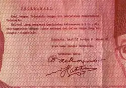 El documento fue firmado por Sukarno y Mohammad Hatta, quienes al día siguiente fueron nombrados presidente y vicepresidente, respectivamente.