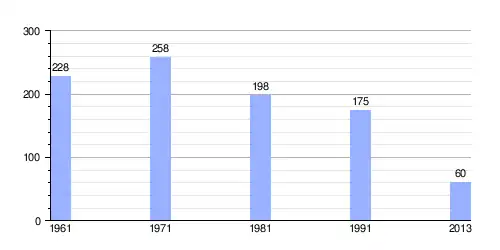 Hasta 2013 la población era de 60 habitantes,[4] con una densidad de población de 12,8 hab/km².[4]