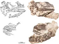 - ↑ Yara Haridy; Mark J. Macdougall; Robert R. Reisz (2018). «The lower jaw of the Early Permian parareptile Delorhynchus, first evidence of multiple denticulate coronoids in a reptile». Zoological Journal of the Linnean Society. in press. doi:10.1093/zoolinnean/zlx085.