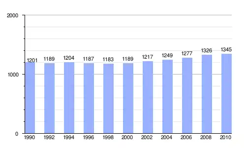 | Población | 1 094 002 | 1 105 498 | 1 152 708 | 1 213 099 | 1 221 546 | 1 199 753 | 1 346 293 | 1 336 889 | |