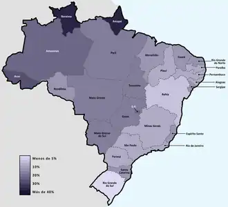 No obstante, tales aportes no son uniformes en el territorio: el aporte europeo tiende a ser mayor en el sur y el africano en el este del país, así como el mayor aporte indígena se encuentra hacia el norte y en el oeste del territorio brasileño, principalmente en la Amazonía: