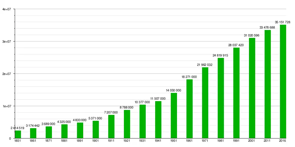 | Gráfica de evolución demográfica de Canadá entre 1851 y |