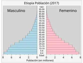 La población etíope se caracteriza por una alta natalidad, una baja expectativa de vida, una alta mortalidad y una mortalidad infantil elevada.