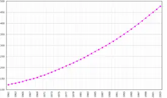 De los rangos de edad, el que contiene a un mayor número de personas comprende las edades entre los 15 y los 64 años (53% en 2000), seguido por los menores de 14 (44%) y los mayores de 65 (3%). En los dos primeros grupos se contabilizan más varones que mujeres, siendo al contrario por encima de los 65 años. El crecimiento poblacional estimado para 2006 era del 2,61%.