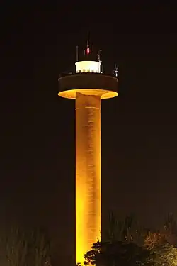 - El depósito superior, también conocido como torre del Agua o torre de la Fiesta del Árbol, es el antiguo depósito de acumulación. De forma cilíndrica, tiene una altura de 70,27 m y 15 plantas.