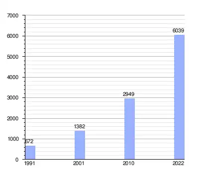 | Evolución de la población desde 1991 al año 2022. Considerando solo a Tolhuin y desde 2022 a todo el departamento nuevo. |