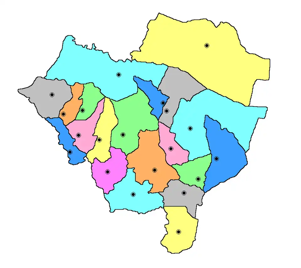 El departamento está dividido en 20 distritos: