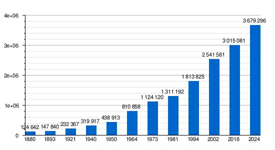 Gráfica de evolución demográfica de Departamento de Guatemala entre 1880 y 2024