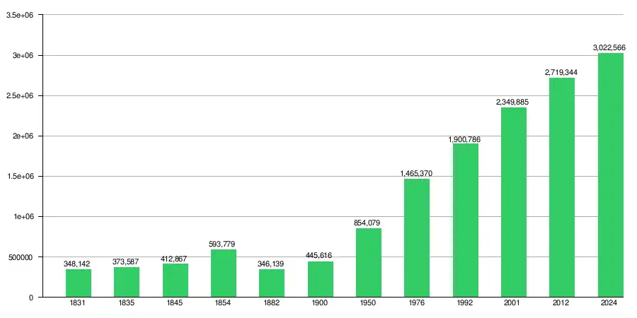 | N.º | Año | Habitantes | Crecimiento Intercensal |