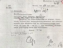 - ↑ Faksimile der Richtlinien vom 4. Juni 1942 bei Alfred Gottwaldt, Diana Schulle: Die „Judendeportationen“ aus dem Deutschen Reich 1941–1945: eine kommentierte Chronologie. Marix, Wiesbaden 2005, ISBN 3-86539-059-5, p. 170–177.