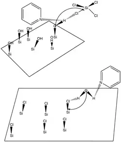 - SiOH* + SiCl4 → SiOSiCl3* + HCl