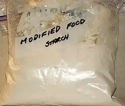 Este tipo de derivados se suele presentar mezclado para obtener las propiedades aglutinantes del almidón, sin sus desventajas. Los almidones modificados se emplean en la fabricación de salsas espesas como las empleadas en la cocina china, conservas, helados, etc.