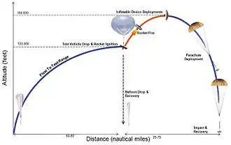 El LDSD utiliza una estructura inflable con forma de donut denominada SIAD (Supersonic Inflatable Aerodynamic Decelerator), la cual crea una gran fricción atmosférica que desacelera el vehículo. Cuando la velocidad se ha reducido suficientemente, el vehículo despliega un paracaídas supersónico que la reduce aún más hasta el régimen subsónico.