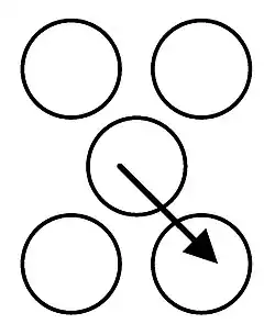 El deslizamiento en cristales cúbicos con centro en las caras ocurre en el plano de empaquetamiento compacto, el cual es del tipo {111} y se da en la dirección <110>. En el diagrama, el plano específico y su dirección de deslizamiento son (111) y [110] respectivamente. Dadas las permutaciones de los tipos de planos de deslizamiento y los tipos de dirección, los cristales FCC tienen 12 sistemas de deslizamiento. En la red FCC, la norma del vector de Burgers, b, que coincide con la mínima distancia entre dos puntos de la red, puede ser calculada usando la siguiente ecuación:[1]