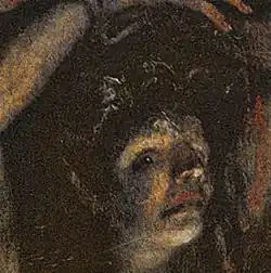 La pintura fue cortada en la parte superior e inferior, y añadido en los lados, especialmente en el derecho, durante el siglo XVIII.[40] En tiempos modernos, la pintura ha sido exhibida en el extranjero en Londres en 1983 y 2003, en Washington en 1986, y en París, Viena, Venecia, Roma, y también Nueva York, en la exposición "Unfinished: Thoughts Left Visible", una exposición de trabajos inacabados, en Met Breuer en 2016.[3][41][42][43][44]