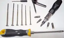 Un destornillador (atornillador o desatornillador) es una herramienta que se utiliza para apretar/forzar y aflojar tornillos y otros elementos de máquinas que requieren poca fuerza de apriete.