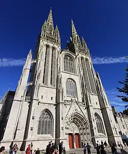 En la Edad Media, el capítulo de Quimper estaba formado por dos archidiáconos, un cantor, un tesorero, un teólogo y doce canónigos. La catedral fue construida a partir de finales del siglo XIII, pero las obras continuaron durante los siglos siguientes y concluyeron a principios del siglo XVI.