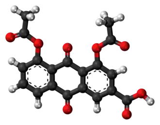 - ↑ a b Fidelix TS, Soares BG, Trevisani VF (2006). «Diacerein for osteoarthritis». Cochrane database of systematic reviews (Online) (1): CD005117. PMID 16437519. doi:10.1002/14651858.CD005117.pub2. Free summary