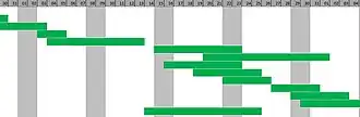 En gestión de proyectos, el diagrama de Gantt muestra el origen y el final de las diferentes unidades mínimas de trabajo y los grupos de tareas (llamados summary elements en la imagen) o las dependencias entre unidades mínimas de trabajo (no mostradas en la imagen).
